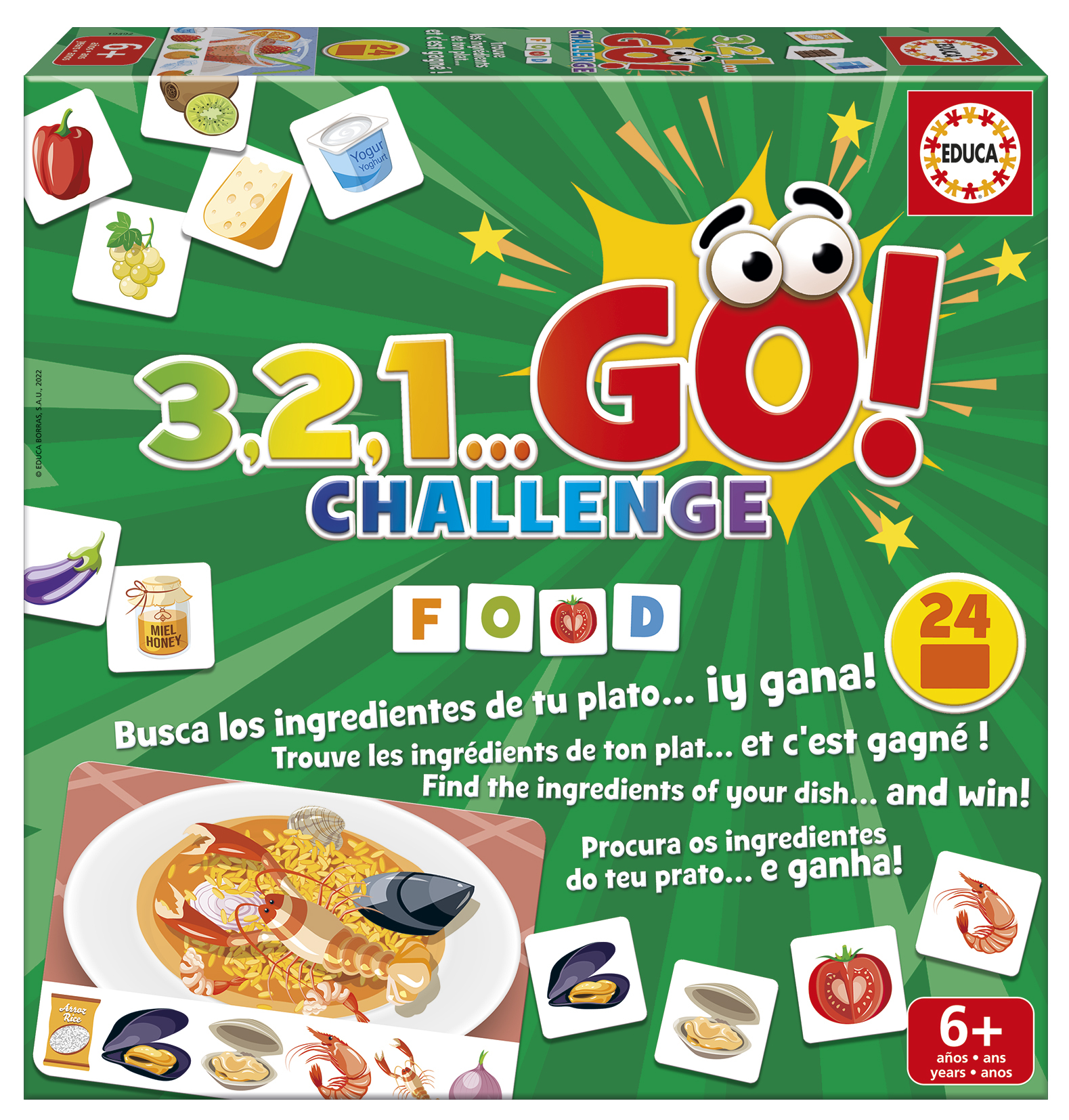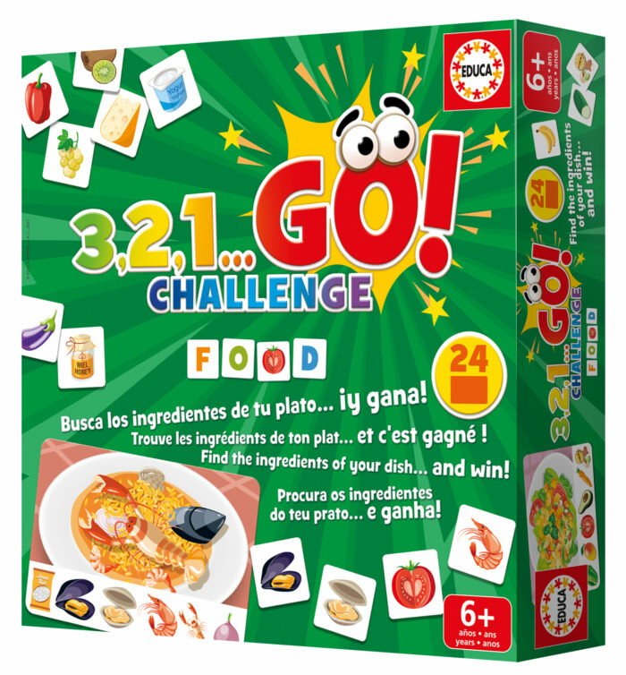 Educa 3,2,1… GO! Challenge Food. Type de produit: Jeu de cartes, Genre: Cooking, Age recommandé (min): 6 an(s), Jeu familial