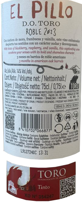 | Libellé | El Pillo Roble D.O. Toro, 2023, Espagne - Rouge - 75 cl |