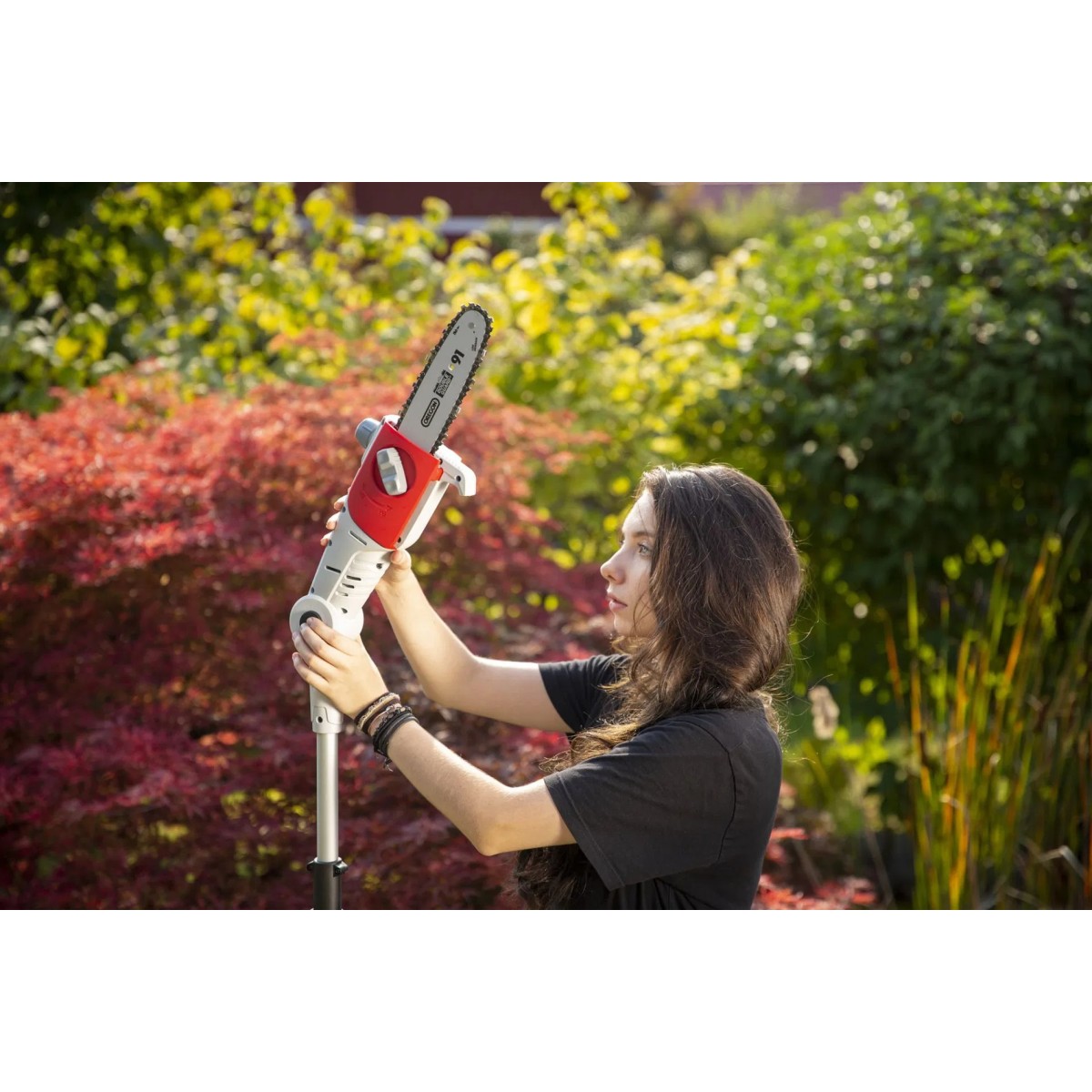 La scie à branches sans fil est conçue pour les particuliers et bricoleurs qui veulent maintenir arbres fruitiers, haies ou grands arbres sans fatigue. Léger (3,7 kg), doté d'un manche télescopique fibre‑verre/aluminium réglable de 1,97 à 2,52 m, l'élagueuse à batterie permet d'atteindre jusqu'à 4 m de hauteur, sans échafaudage.