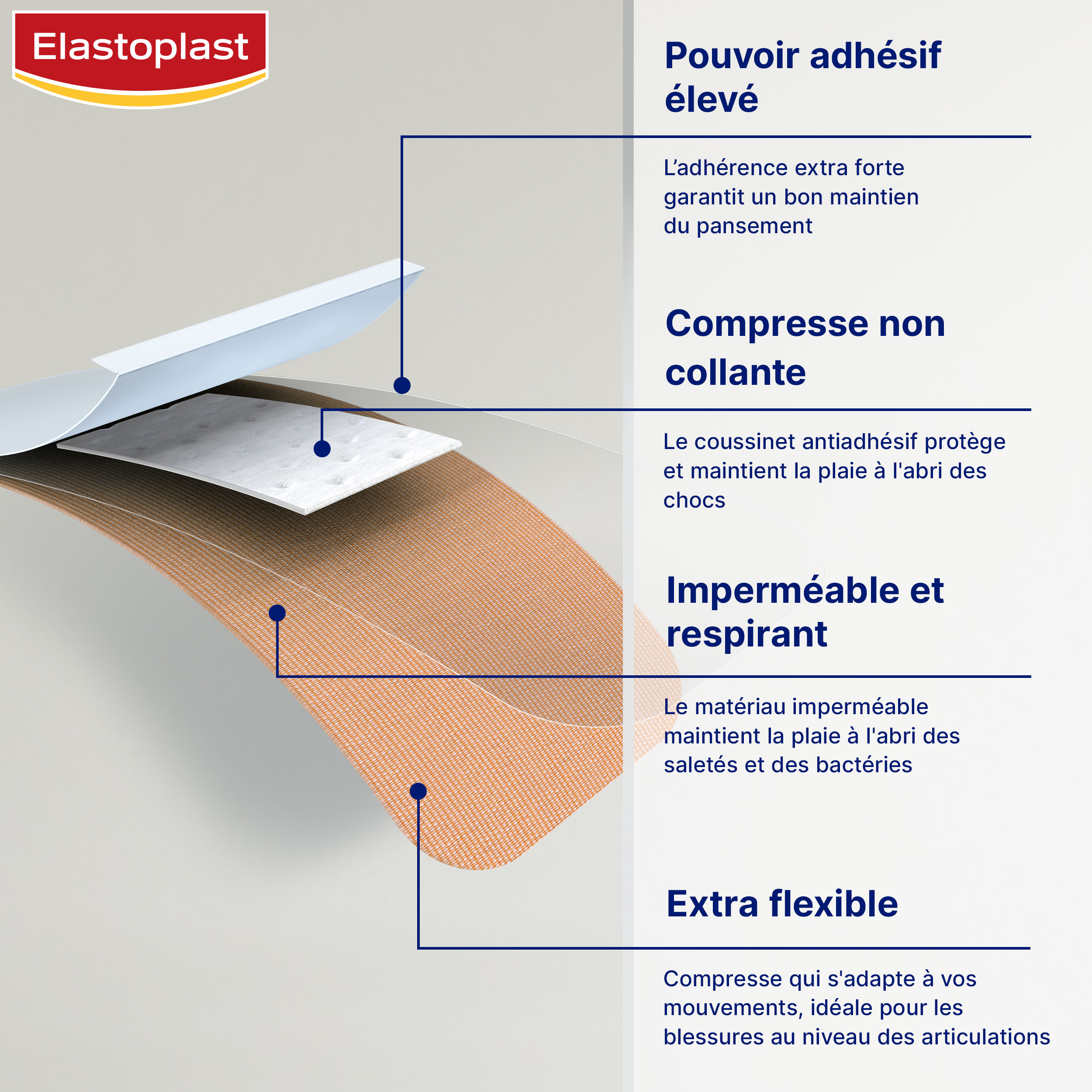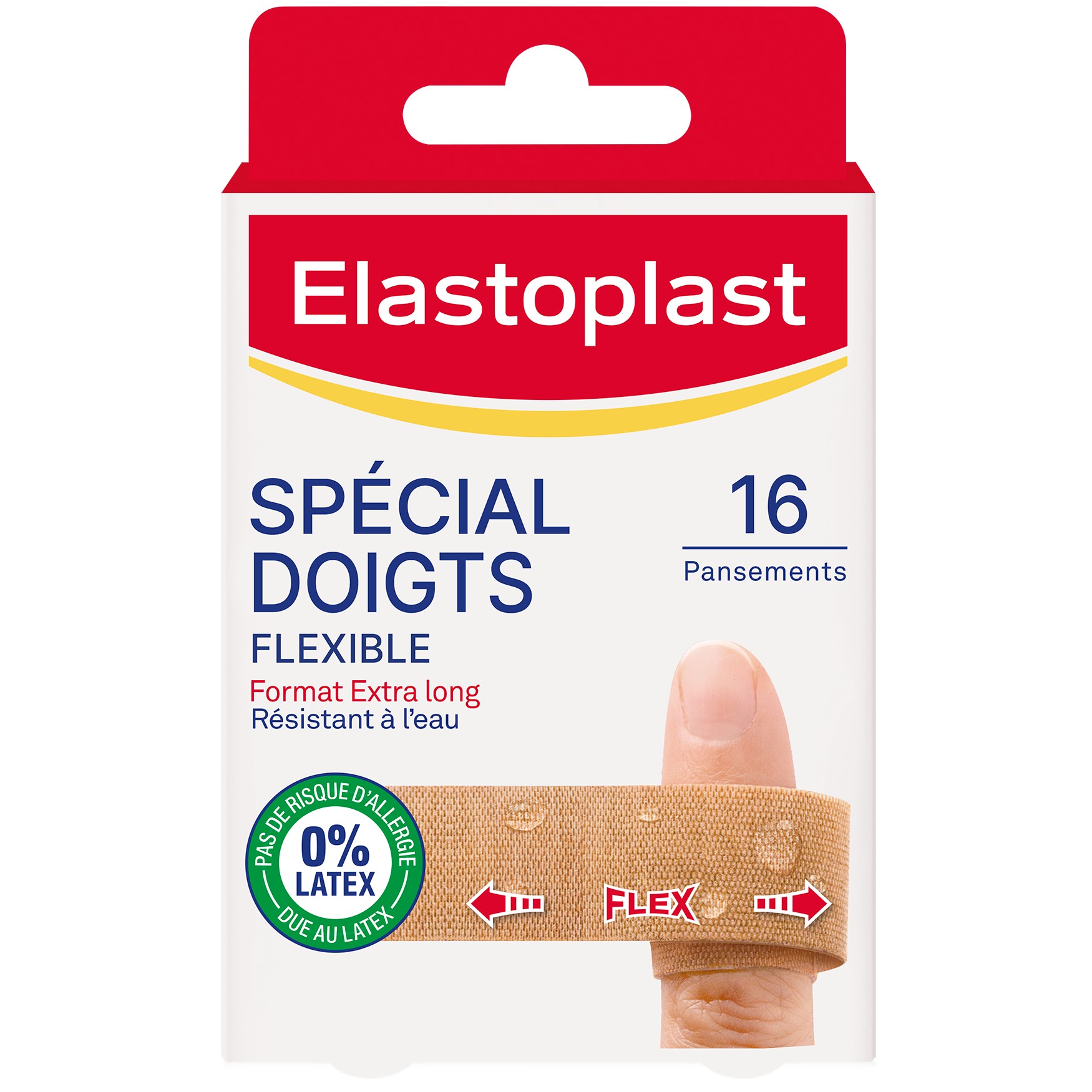 Les pansements Elastoplast Spécial Doigts flexible sont résistants à l'eau et disposent d'un format extra long. Ils procurent une protection flexible pour couvrir et protéger les petites blessures du quotidien. Ils sont extra flexible, résistants à l'eau et disposent d'un pouvoir adhésif élevé. Ils peuvent s'enrouler deux fois autour du doigt pour un bon maintien et laissent respirer la peau. Ce sont des pansements en tissu. 0% Latex, pas de risque d'allergie due au latex.