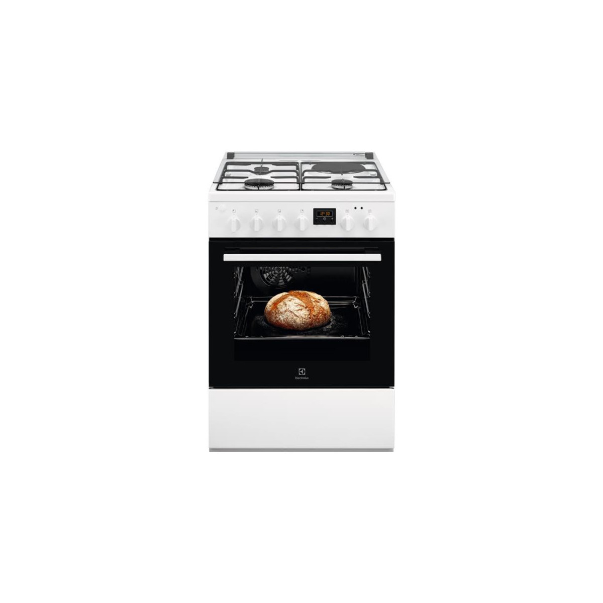 | Libellé | ELECTROLUX Cuisinière mixte 4 foyers 60x60 four catalyse 57L blanc |
