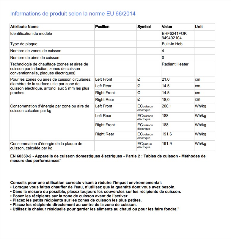 | Libellé | Electrolux - Table vitrocéramique - EHF6241FOK - 60 cm - Noir |