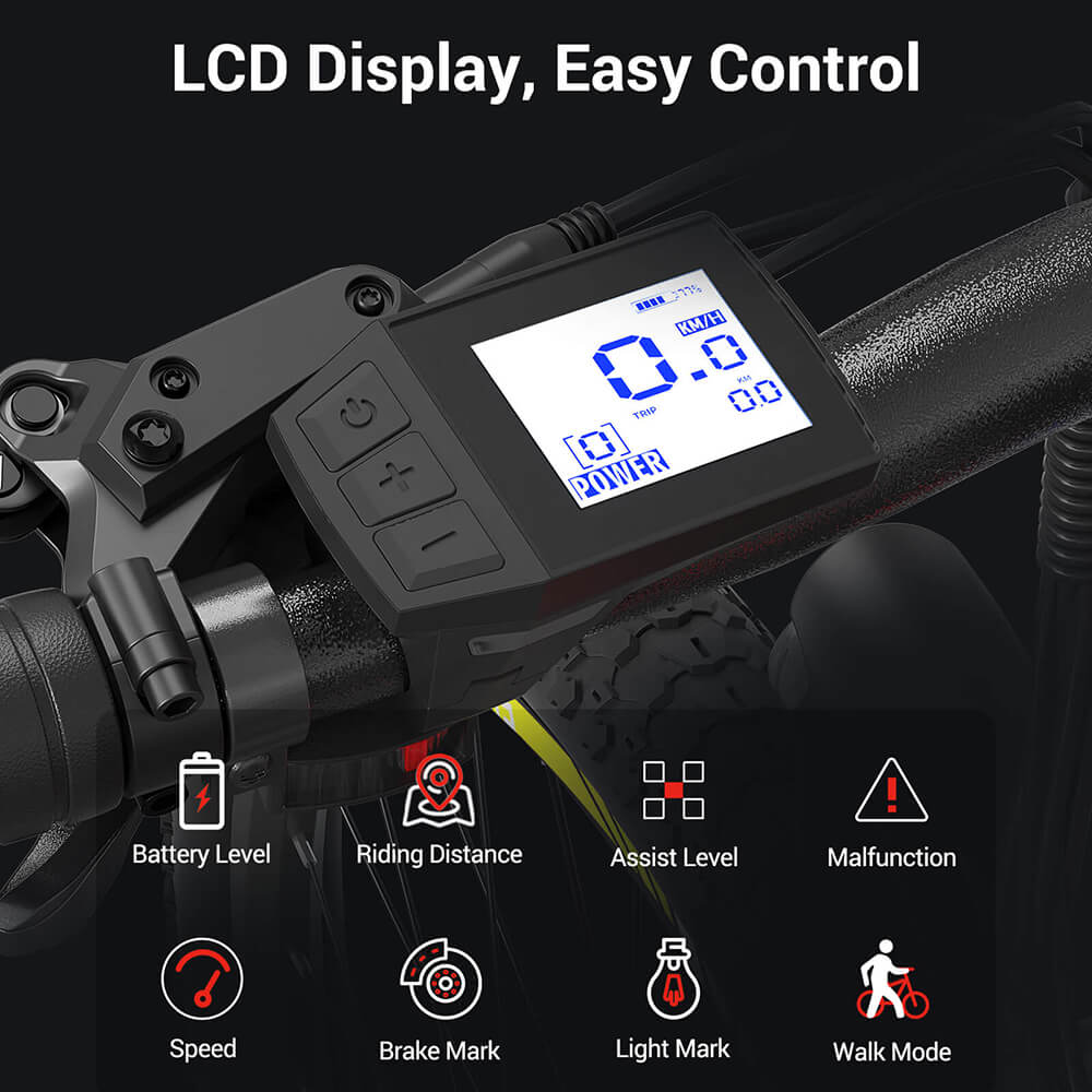 L'Eleglide Mopride 2 dispose d'un écran LCD intelligent qui vous tient informé des données importantes, telles que la vitesse en temps réel, la distance parcourue et le niveau de batterie. Il vous permet de basculer entre 5 niveaux d'assistance au pédalage (12, 16, 20, 23 et 25 km/h), ainsi que d'activer le mode marche à 6 km/h et plus. De plus, vous pouvez contrôler votre vélo via l'application Eleglide sur votre téléphone. L'application intelligente vous permet d'activer des fonctions supplémentaires, telles que le verrouillage du vélo, le réglage d'un mot de passe et l'ajustement du délai d'extinction de l'écran, pour tirer le meilleur parti de votre trajet.