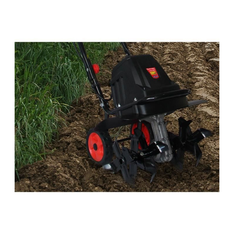 Cette puissante motobineuse électrique 1400w de la marque Elem Garden Technic est l'outil idéal pour l'entretien de son potager ou de son jardin. Elle vous permet un travail rapide et efficace grâce à sa surface de travail d'une largeur de 40 cm. De plus, elle est capable d'atteindre une profondeur de travail de 20.5 cm. Pour une meilleure efficacité, elle est dotée de 6 fraises. Puissante et légère, cette motobineuse électrique vous offre un confort de travail optimal.
