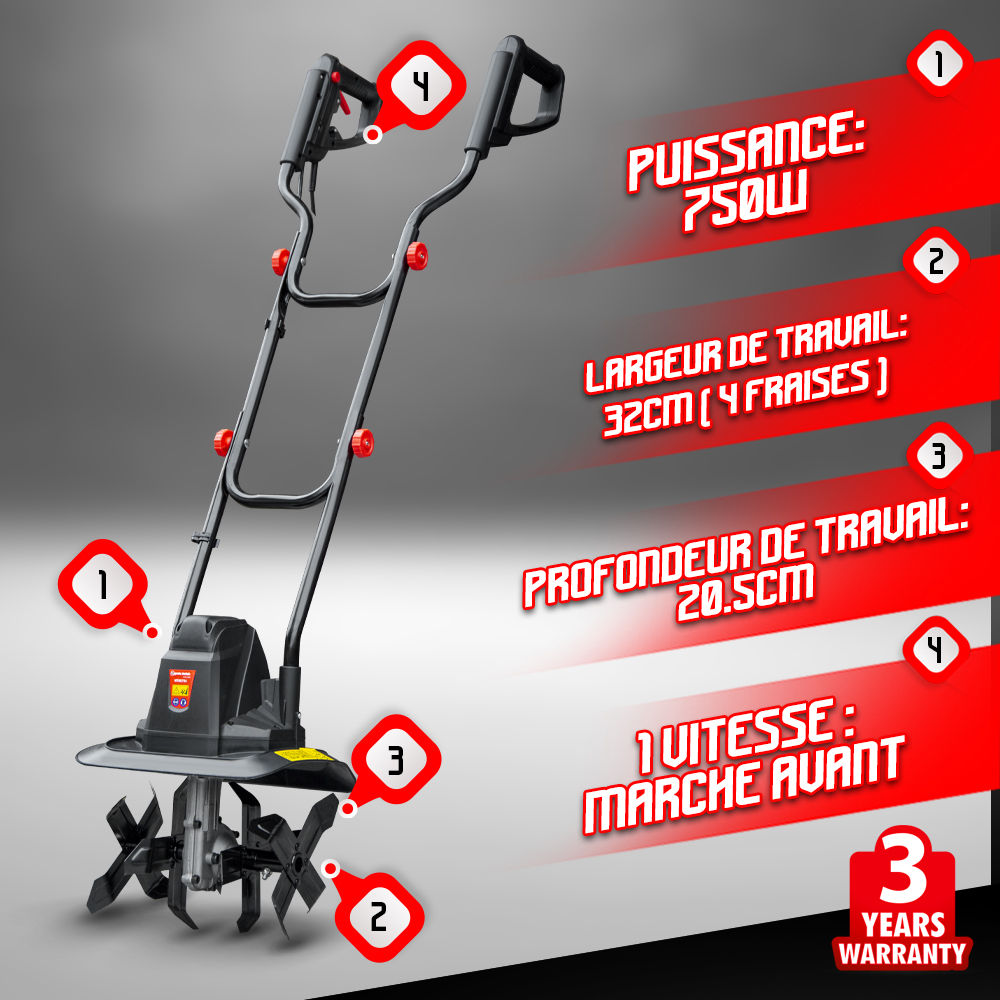 | Libellé | Elem Technic MTBE754 Mini-fraise Motoculteur électrique Secteur 6,8 kg |