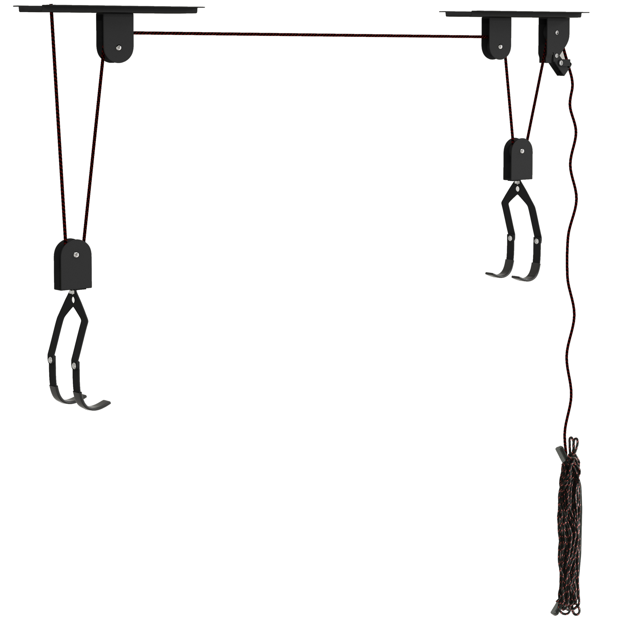 - Le système de poulie de ce range de vélo mural permet de soulever les vélos dans les garages avec des plafonds hauts