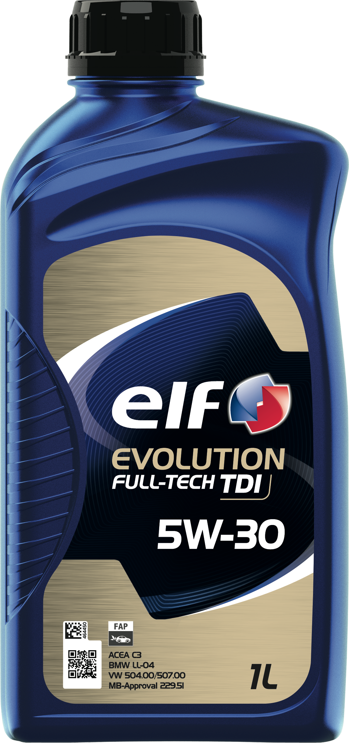 ELF EVOLUTION FULL-TECH TDI 5W-30 répond à la norme internationale ACEA C3, est homologué VOLKSVAGEN VW 504.00/507.00; BMW LL-04;MERCEDES BENZ MB-Approval 229.51 (rétro-applicable MB-approval 229.31) et satisfait les exigences techniques de RENAULT, NISSAN, FORD, OPEL, SAAB, TOYOTA, FIAT, PEUGEOT et CITROEN.100 % synthétique, ELF EVOLUTION FULL-TECH TDI 5W-30 est spécialement formulé pour les moteurs de véhicules de tourisme essence et Diesel et est compatible avec les systèmes de post-traitement.Cette huile moteur peut être utilisée pour tous types de parcours (ville,route,autoroute) en toutes saisons et convient à toutes les conduites, en particulier sportives et à haut régime. Elle optimise les systèmes de post-traitement permettant une forte réduction des émissions polluantes, grâce à ses bas taux de soufre, cendres et phosphore. ELF EVOLUTION FULL-TECH TDI 5W-30 assure une durabilité moteur hors normes, satisfait les plans d’entretien constructeurs les plus exigeants en permettant des intervalles de vidange allongés et confère aux moteurs une excellente protection contre l’usure (distribution, segment, piston et chemise).