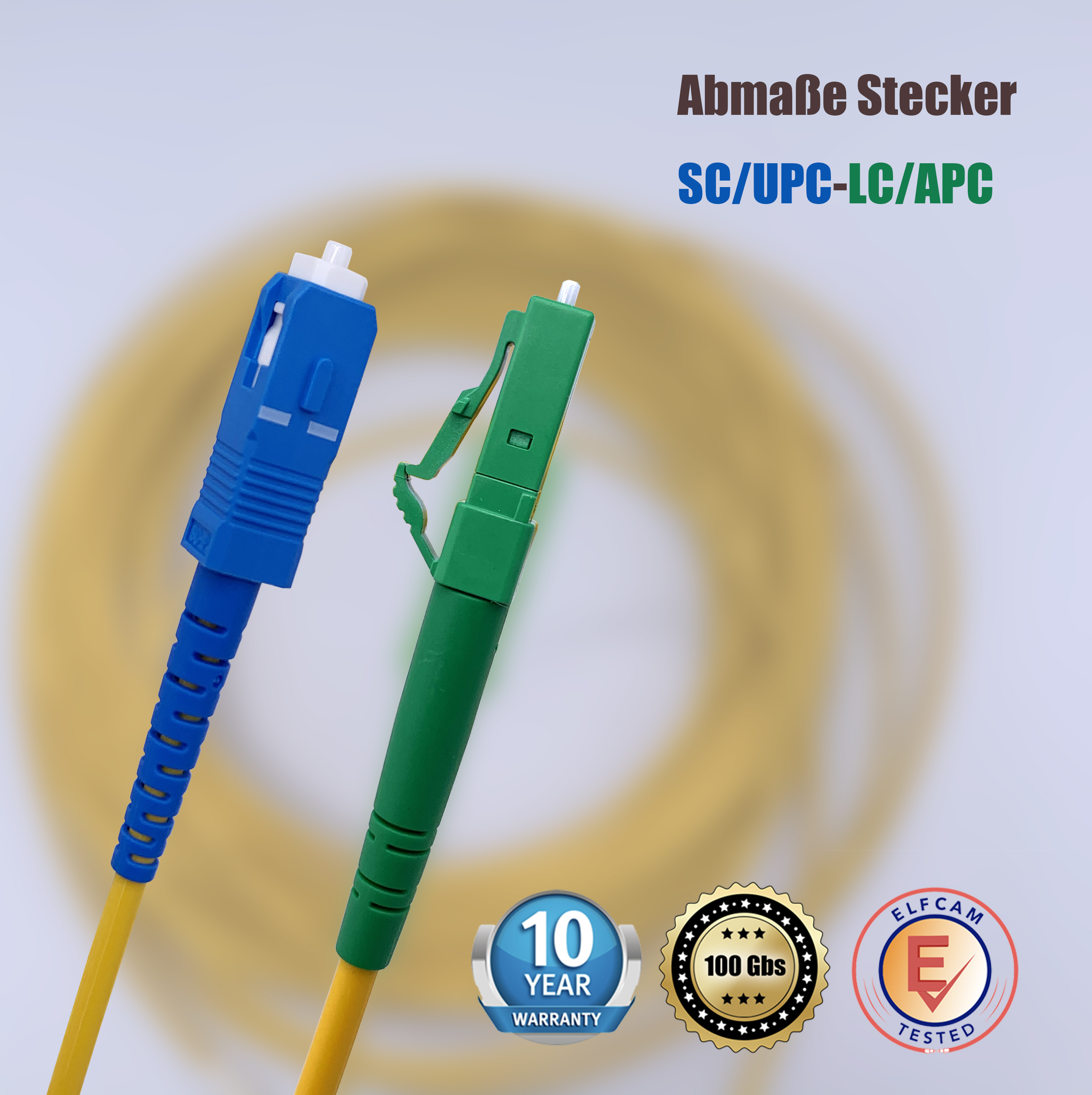 Elfcam® - Cable a Fibre Optique LC/APC a SC/UPC Monomode Simplex, 9/125um Jarretiere Optique LSZH (3M)