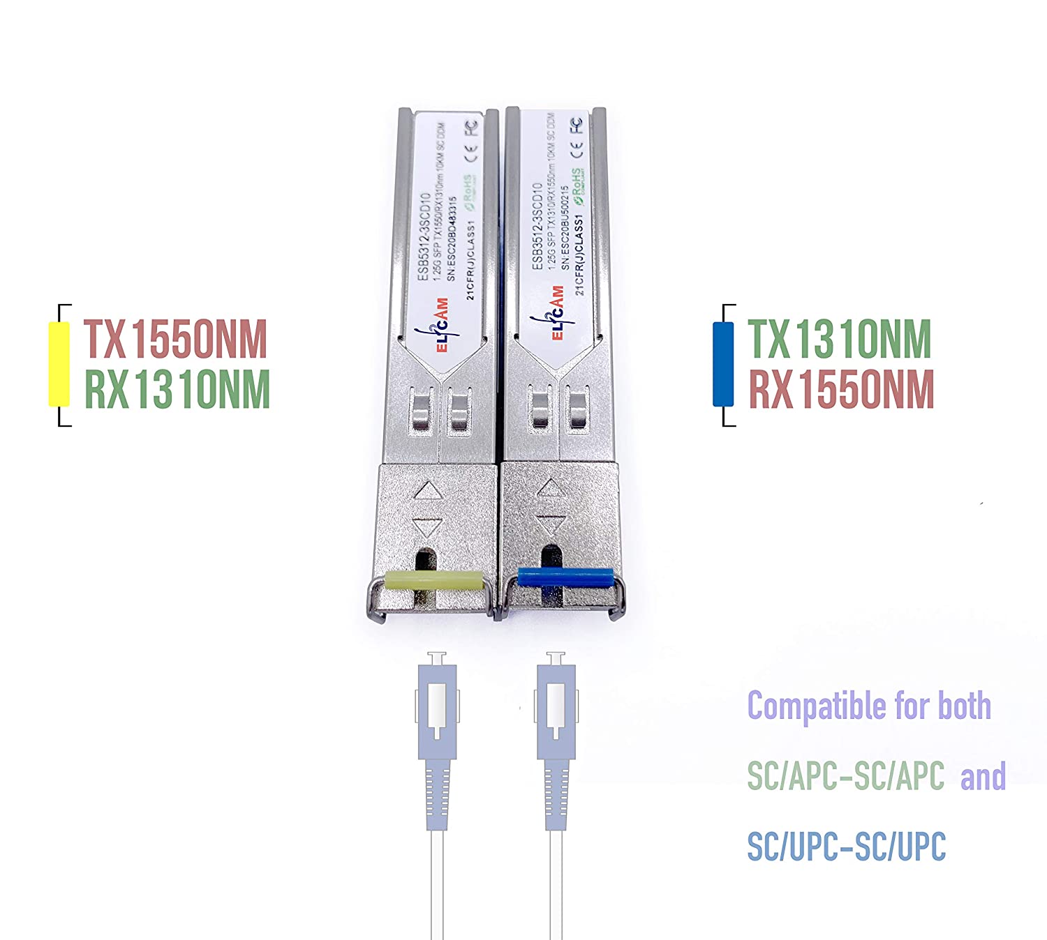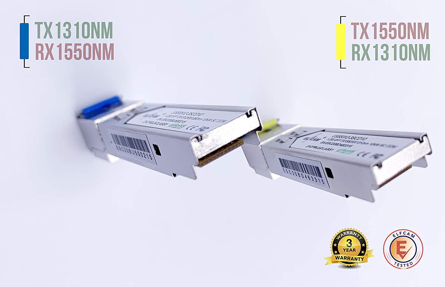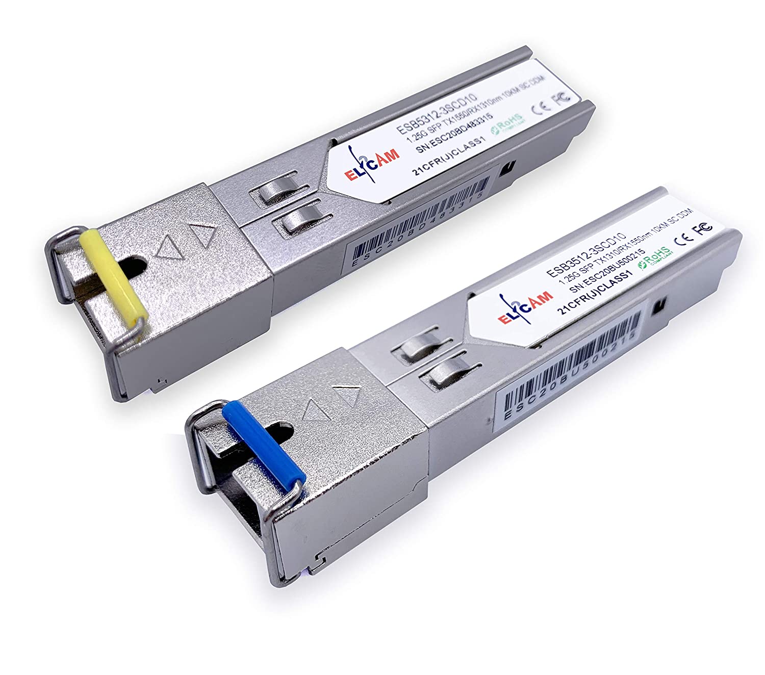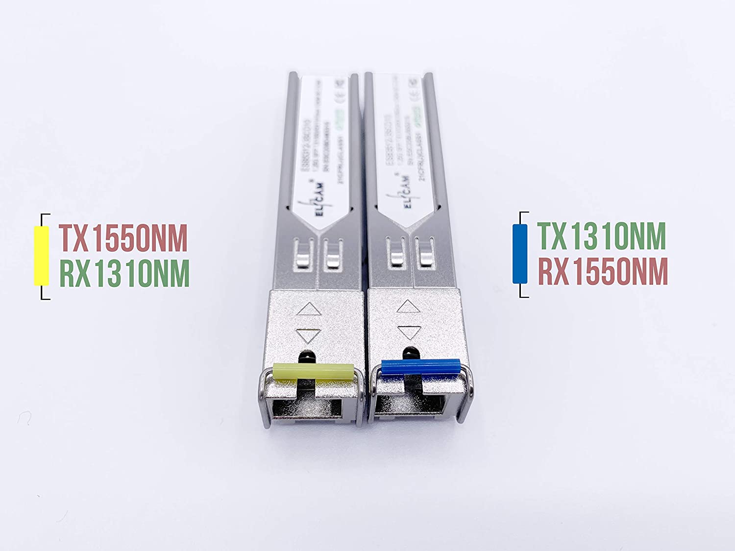 | Libellé | Elfcam® - Lot de 2 Module SFP 1,25G, Connecteur Cable a Fibre Optique Monomode SC, DDM 10KM, TX1310nm / RX 1550nm et TX1550nm / RX 1310nm |