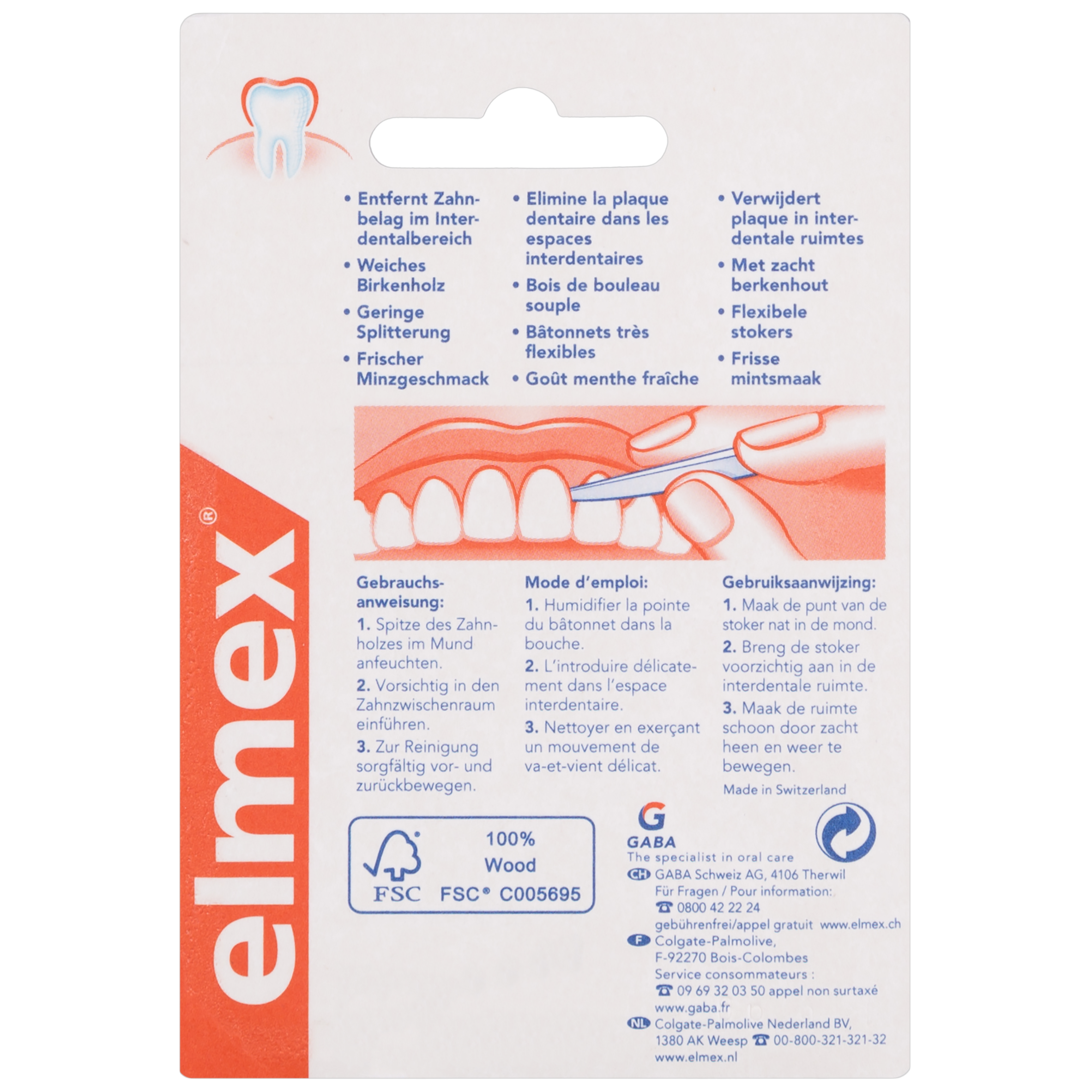 Bâtonnets interdentaires Elmex, ils éliminent la plaque dentaire dans les espaces interdentaires où la carie a davantage tendance à se développer.