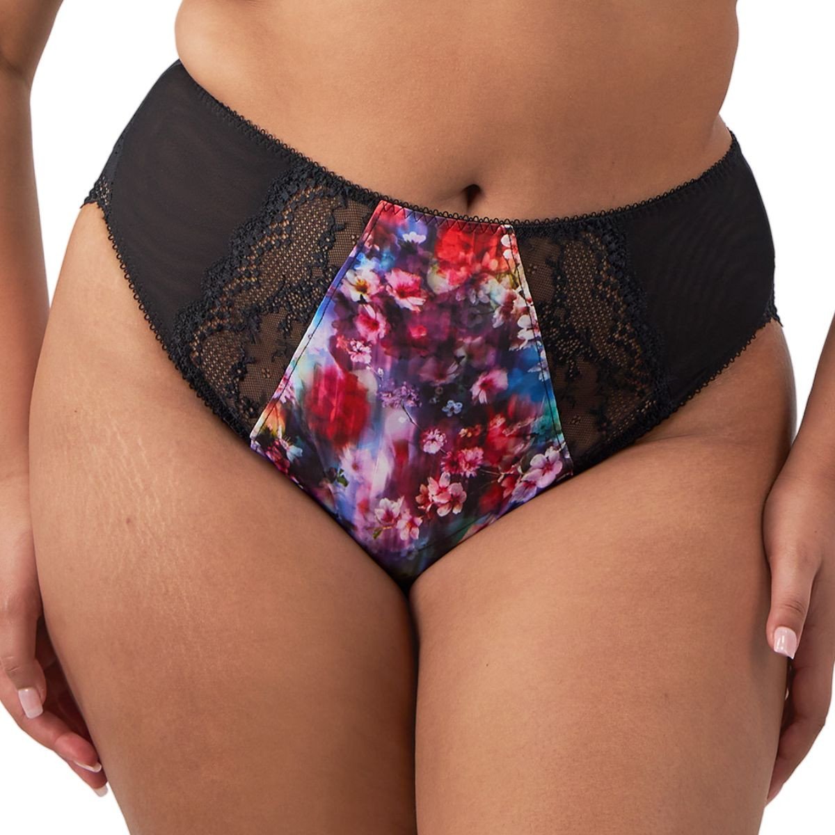 Culotte taille haute avec panneaux transparents imprimé Lucie. En tant que marque Européenne, Elomi vous garantit une bonne qualité avec des finitions soignées.