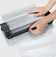 Idéal pour les rouleaux de film jusqu'à une largeur de 28,5 cm, avec fenêtre pour le stockage de film, séparation optimale par double fil de soudure.