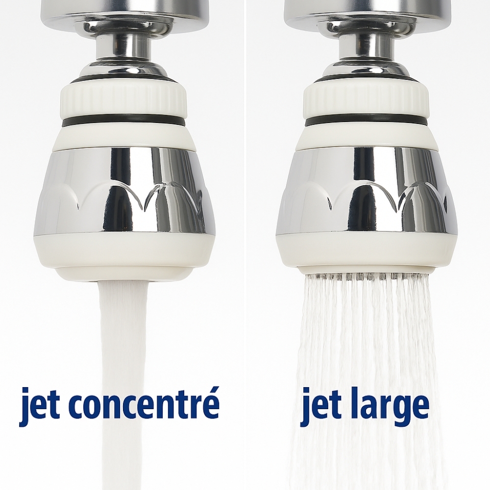 | Libellé | Embout Robinet 360° Chrome Blanc – Économie d’Eau & Filtration |
