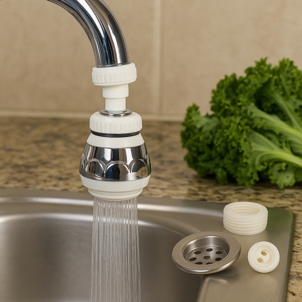 Embout Robinet 360° Chrome Blanc – Économie d’Eau & Filtration