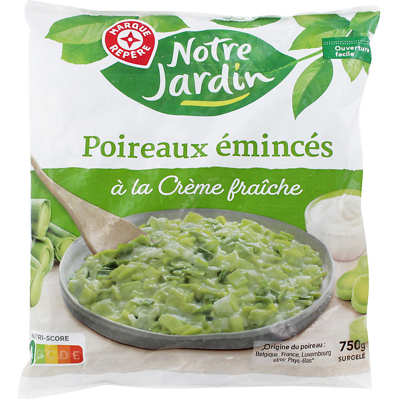 Poireaux émincés cuisinés à la crème fraîche, surgelés NOTRE JARDIN