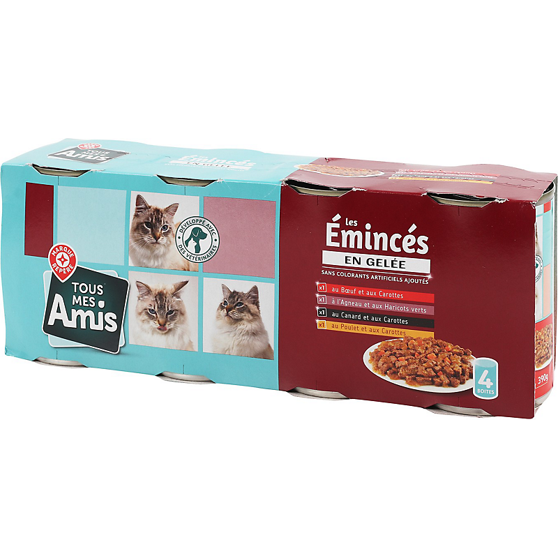 emincés en gelée assortiment de viandes 390 g x 4 - 1,56 kg - TOUS MES AMIS