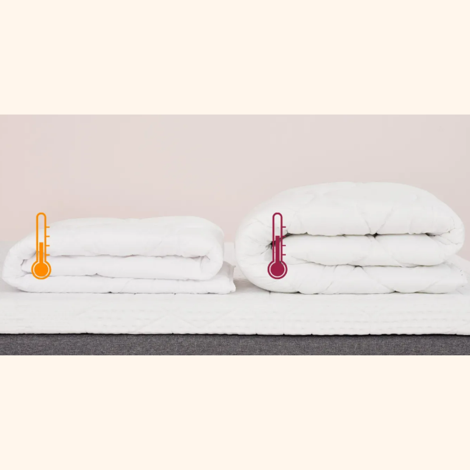 La couette 3 en 1 qui vous suivra toute l'année. Couette hiver pour vous tenir au chaud. Couette été pour rester frais. Matériaux naturels et recyclés. Facilement ajustable. Grâce à ses deux couches d'épaisseur différentes; notre couette s'adapte à toutes les saisons; choisissez le niveau de chaleur désiré. Redécouvrez le plaisir de se glisser dans son lit avec cette couette légère et respirante.