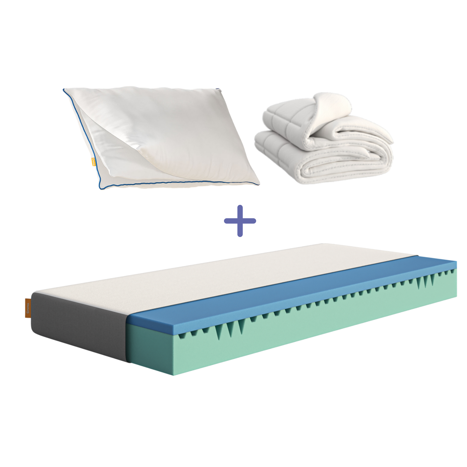 Emma | Pack Matelas Confort + Oreiller + Couette | Sommeil Réparateur | Indépendance De Couchage | Confor