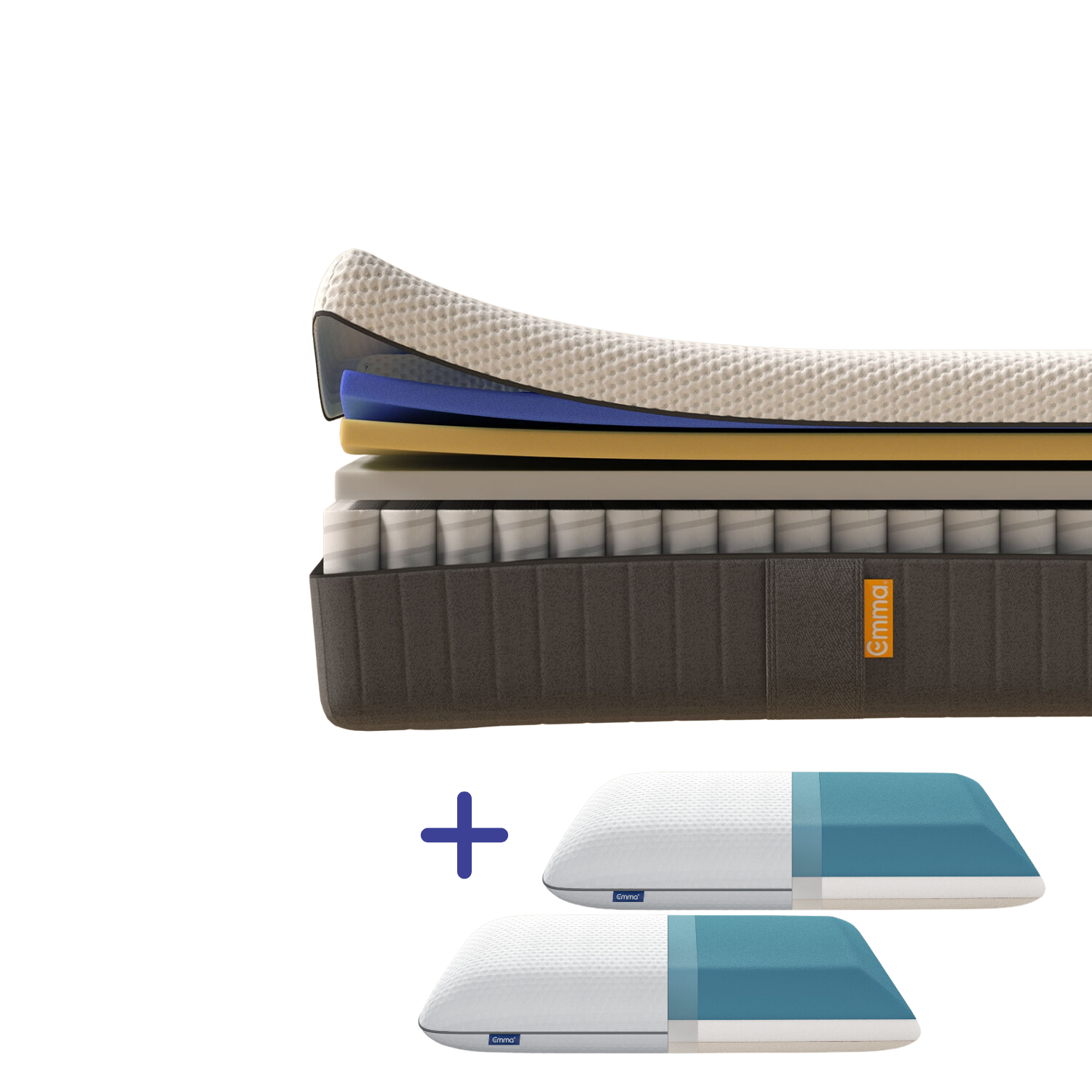 EMMA | Pack Matelas Emma Original 180x200 + 2 Oreillers Emma Original Adapt | Mémoire de Forme + Ressorts