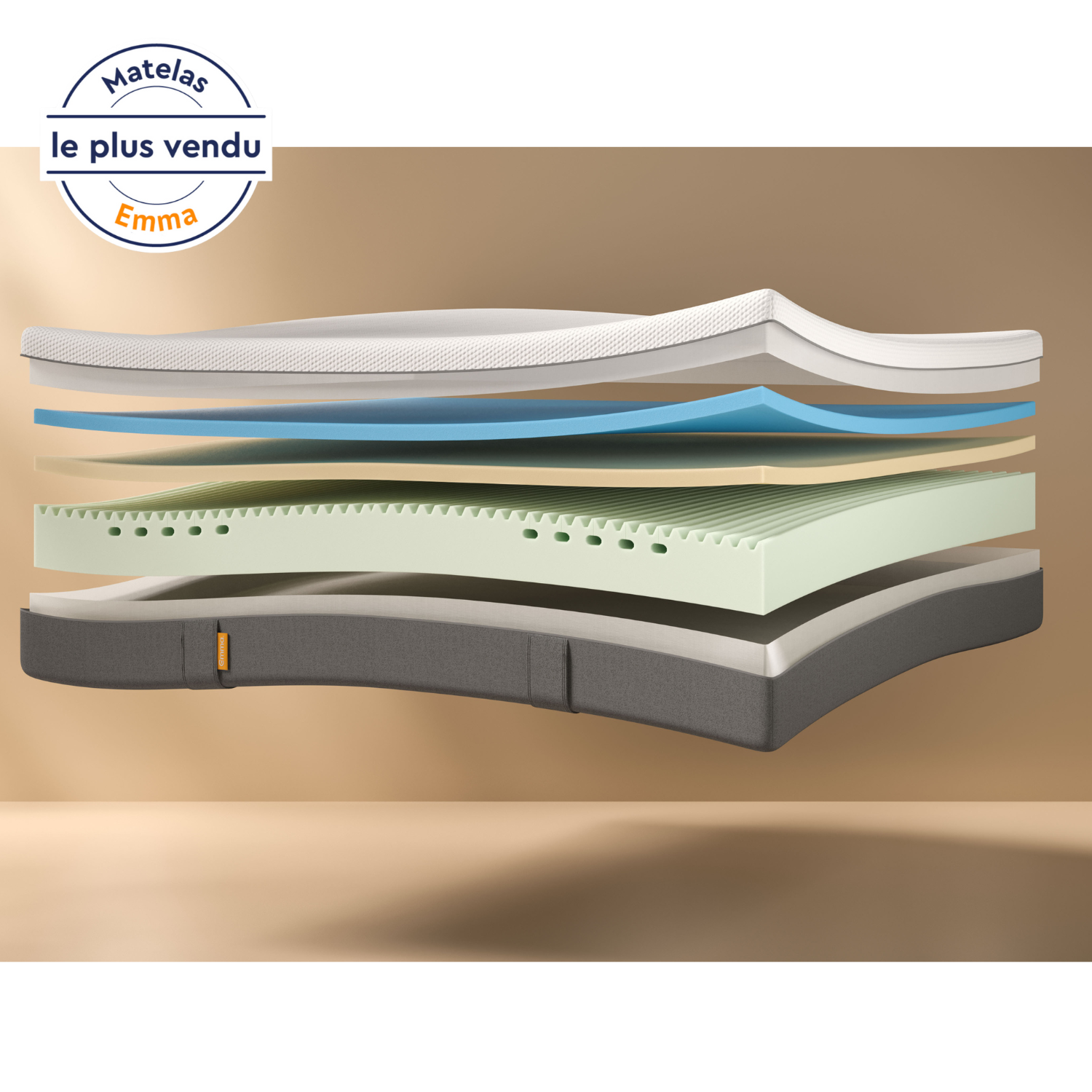 Le matelas « Original » s’appelle « Matelas Emma Original Classic », à compter du 4 février 2026. Un pack conçu pour mieux dormir ! Grâce à ses 4 couches spéciales combinées dans 25 cm d'épaisseur; le matelas Emma Original Classic vous offre un soutien ferme et équlibré. Accompagné de l'oreiller à mémoire de forme à 3 couches; vous pourrez personnaliser sa hauteur (1; 2 ou 3 couches) en fonction de vos préférences de sommeil. Contenu du pack : 1 matelas Emma Original Classic + 2 Oreillers Emma Original Adapt. Certains produits ou communications peuvent encore porter l’ancien nom, car nous sommes actuellement en train de mettre en œuvre tous les changements nécessaires dans le processus logistique.