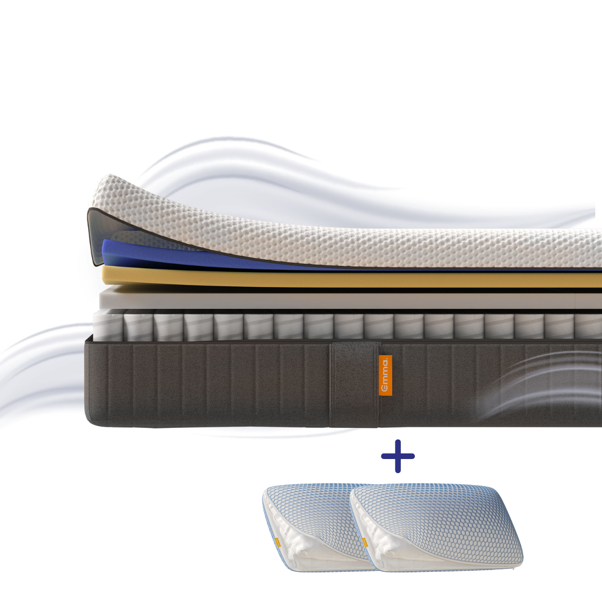 EMMA | Pack Matelas Hybride II Plus + Oreiller Nuage Elite | Mémoire de Forme + Ressorts | Housse Plus Re