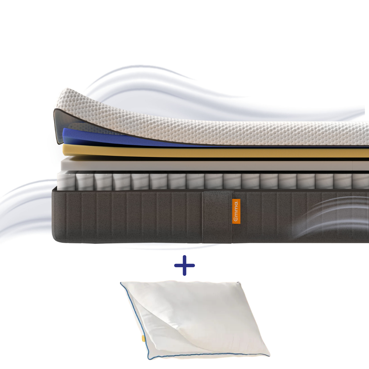 EMMA | Pack Matelas Hybride II Plus + Oreiller Nuage | Mémoire de Forme + Ressorts | Housse Plus Respiran