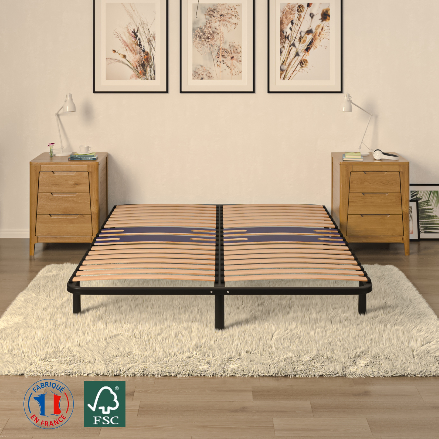 Emma | Sommier à Lattes Fixes | Confort Tri-Zones Optimal | Fabrication 100% française | 5 Ans de Garanti
