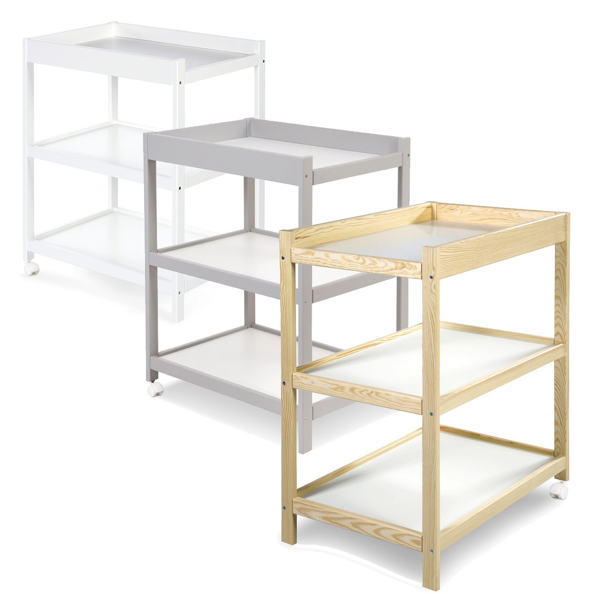 | Plus produit | Table à langer en bois de pin composée d'un plan à langer et de 2 étagères en MDF mélaminé |