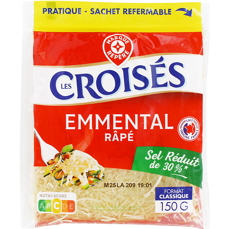 Emmental râpé - Fromage à pâte pressée cuite LES CROISES