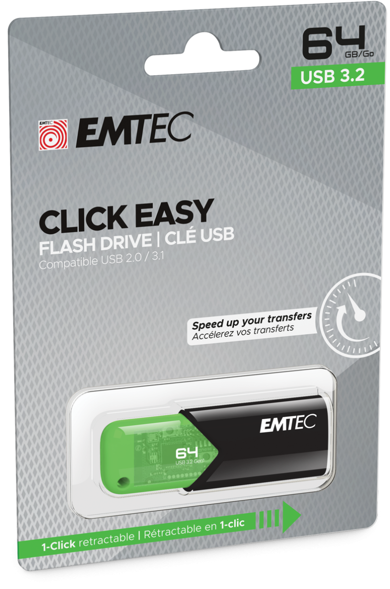 Emtec Click Easy lecteur USB flash 64 Go USB Type-A 3.2 Gen 1 (3.1 Gen 1) Noir, Vert