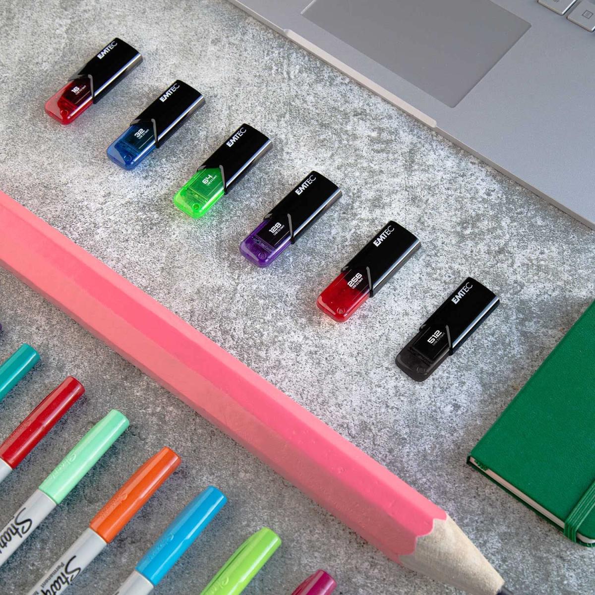 B110 Click Easy 3.2 Élégante et performante, La clé parfaite au quotidien ! - Stockage : 64 Go - 2 X plus rapide qu’une clé USB 2.0 - Design «capless» exclusif EMTEC - Système à ressort mécanique - Un subtile mélange de noir et de couleur pour un design tendance - Trou d’accroche - Compatible Mac / Windows - Retro-compatible USB 2.0 / USB 3.1