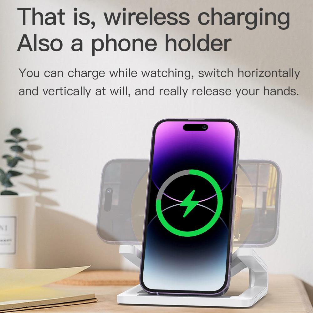 - Il ne s'agit pas seulement d'un chargement sans fil, mais aussi d'un support pour téléphone mobile. Il prend en charge la charge et le visionnage, et peut être commuté entre l'horizontal et le vertical, libérant vos mains