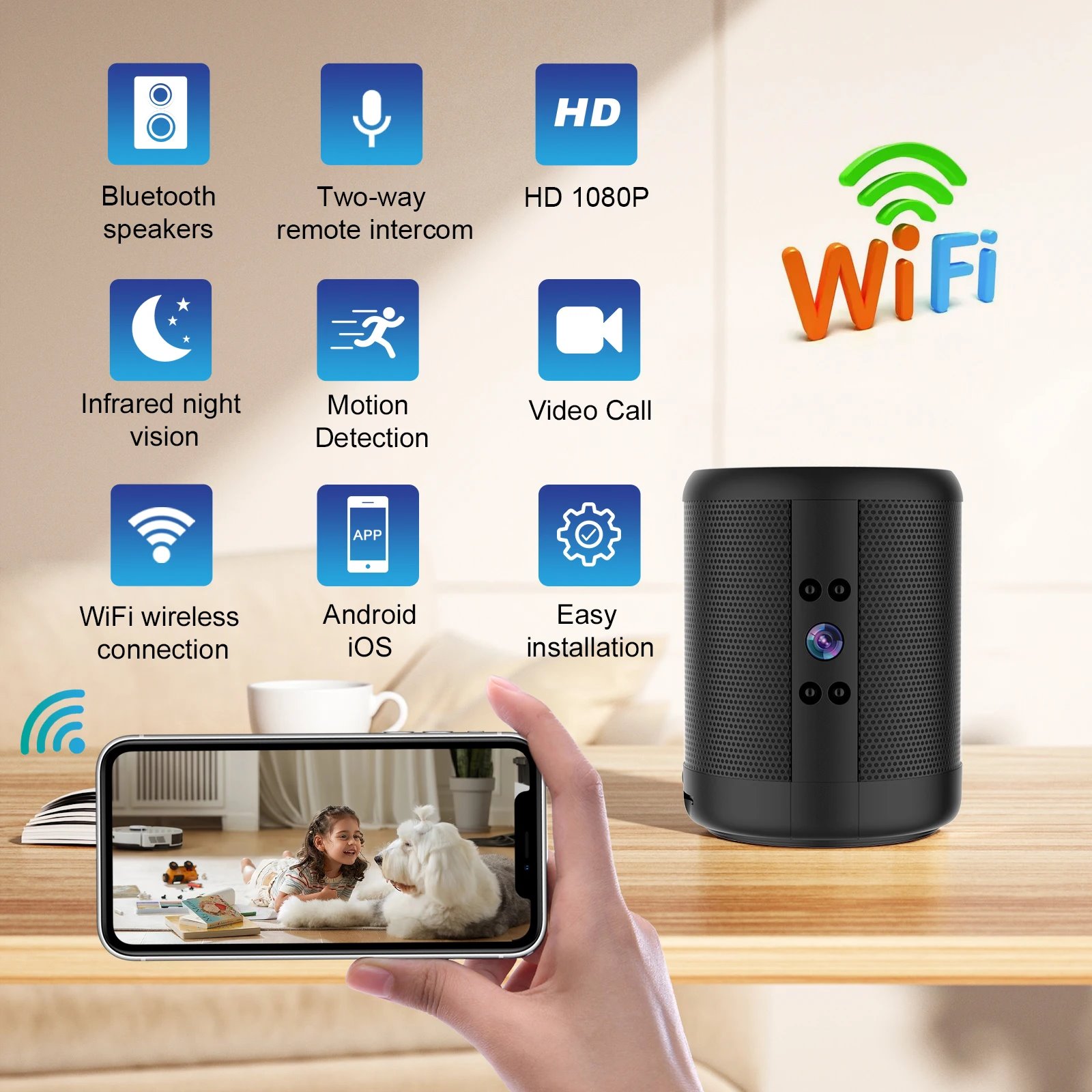 Enceinte Bluetooth Camera Espion Wifi Full HD 1080p Vision Nocturne Détection Mouvement + SD 128Go YONIS
