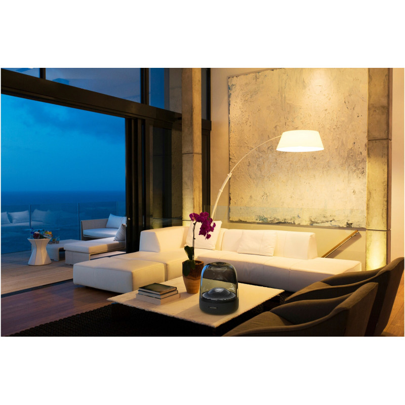 Placez la Harman Kardon Aura Studio 3 n'importe où dans votre domicile. Sa forme élégante et son encombrement minimal s'intègrent parfaitement, en créant un élément spectaculaire qui se fond admirablement dans votre décor.