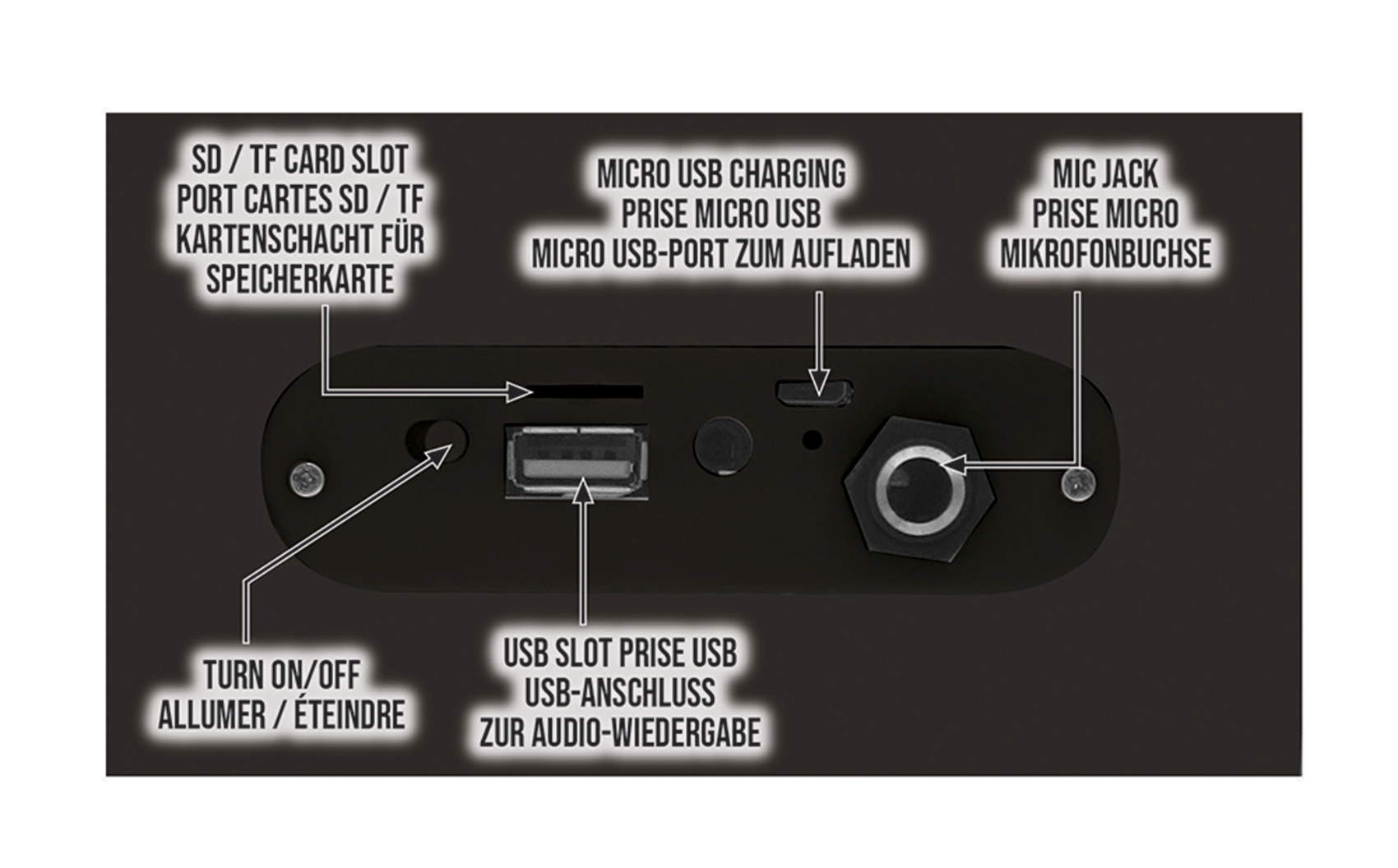 * Enceinte Bluetooth avec effets lumineux multicolores sur les 2 haut-parleurs. L'enceinte devient karaok� avec son micro inclus. Elle dispose d'un port USB, d'un port Aux-in et d'un emplacement pour carte micro SD/TF pour se connecter � plus de p�riph�riques que jamais, et fonctionne sans fil avec les appareils �quip�s de la fonction Bluetooth . * 2 haut-parleurs puissants avec d'incroyables effets lumineux multicolores ! * Avec Bluetooth 5.0, fonctionne sans fil avec les appareils �quip�s de la fonction Bluetooth : smartphones, tablettes... * Vous pouvez �galement connecter une carte SD/TF, une carte USB ou un c�ble Aux-In (c�ble inclus) pour lire vos fichiers Mp3. * Batterie rechargeable (1200mAh) pour �couter votre musique pendant des heures. Rechargeable via le port micro USB (c�ble inclus). * Microphone inclus pour chanter sur vos chansons pr�f�r�es, avec contr�le du volume du microphone et de l'�cho. * Poign�e sur le dessus pour le transporter partout.
