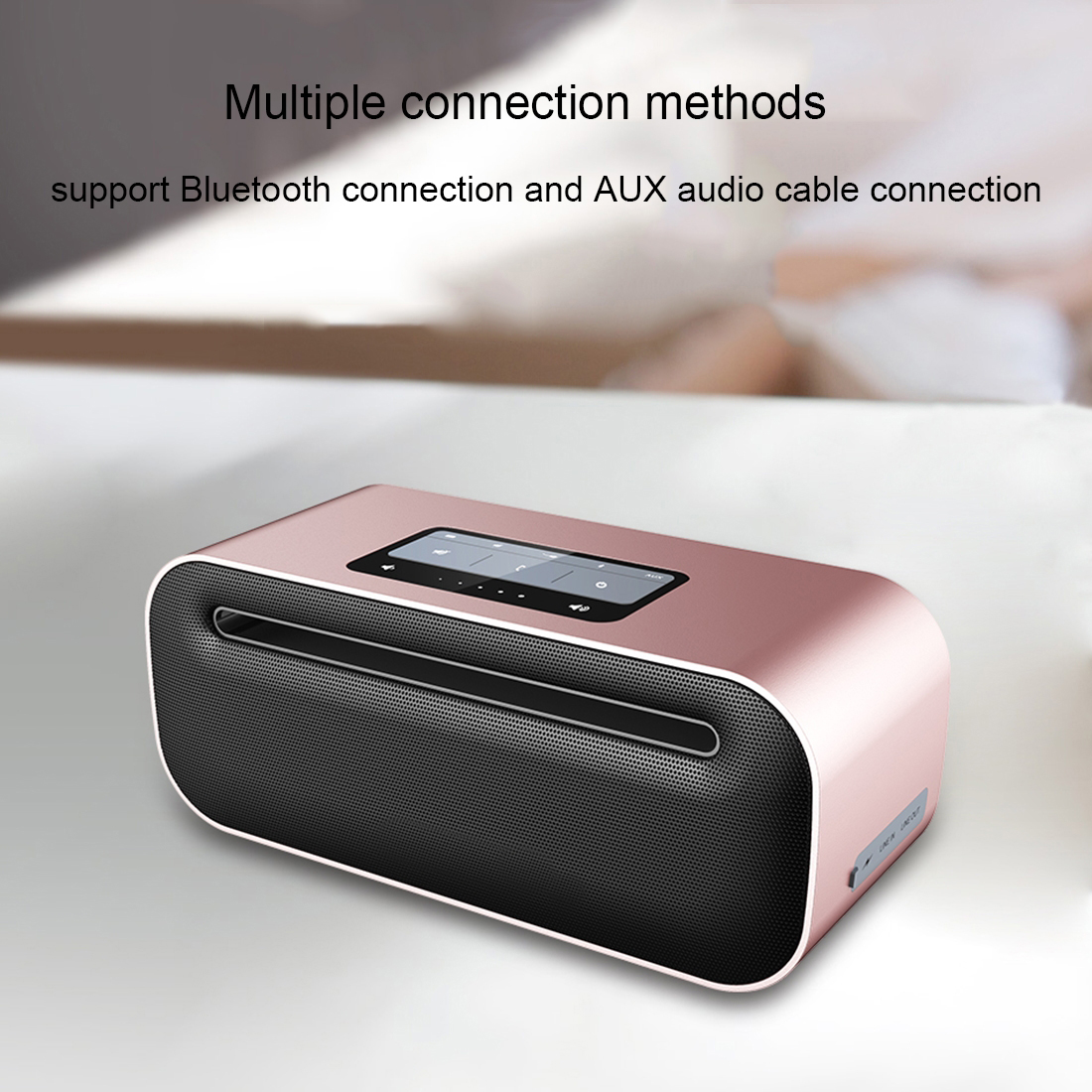 L'Enceinte Bluetooth Sans Fil se présente sous la forme d'un boîtier rectangulaire aux coins arrondis d'une apparence simple et moderne. Il est principalement construit d'un alliage d'aluminium résistant qui lui confère une protection contre les chocs et la poussière. Vous retrouverez une interface de contrôle sur le dessus de l'appareil qui vous permet de faire utilisation de toutes ses fonctionnalités. Sa batterie rechargeable de 2600 mAh permet une autonomie de 14 à 16 h en utilisation continue et se charge en seulement 5,5 heures.
