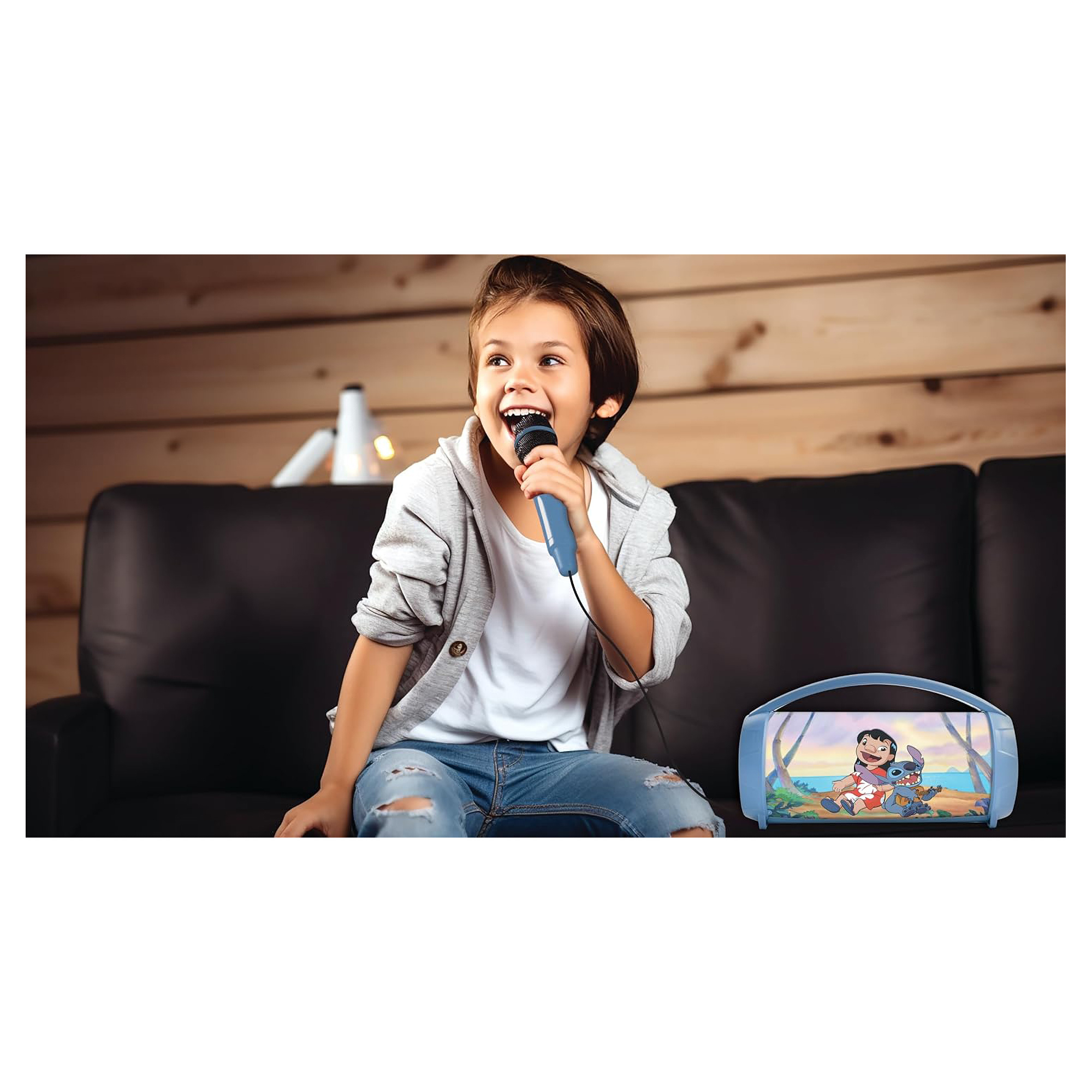 Magnifique Enceinte Bluetooth® Sans-Fil Lumineuse avec Micro Stitch • Enceinte Bluetooth® 5.0 : fonctionne sans-fil avec tous les appareils équipés du Bluetooth comme les smartphones ou les tablettes. • Des effets lumineux multicolores incroyables ! • Grâce à son micro inclus, l’enceinte fait aussi karaoké. • Port carte micro SD/TF, port USB pour brancher une clé USB, et port Aux-IN pour connecter un périphérique audio. • Fonction TWS : synchronisez-en 2 ensembles pour profiter d’un son stéréo. • Batterie rechargeable 1200 mAh pour plusieurs heures d’utilisation en continu !
