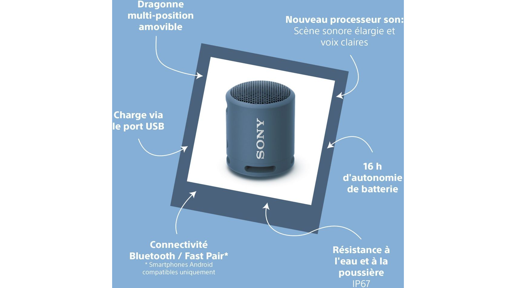| Libellé | Enceinte Bluetooth Sony SRS-XB13 Bleu lagon |
