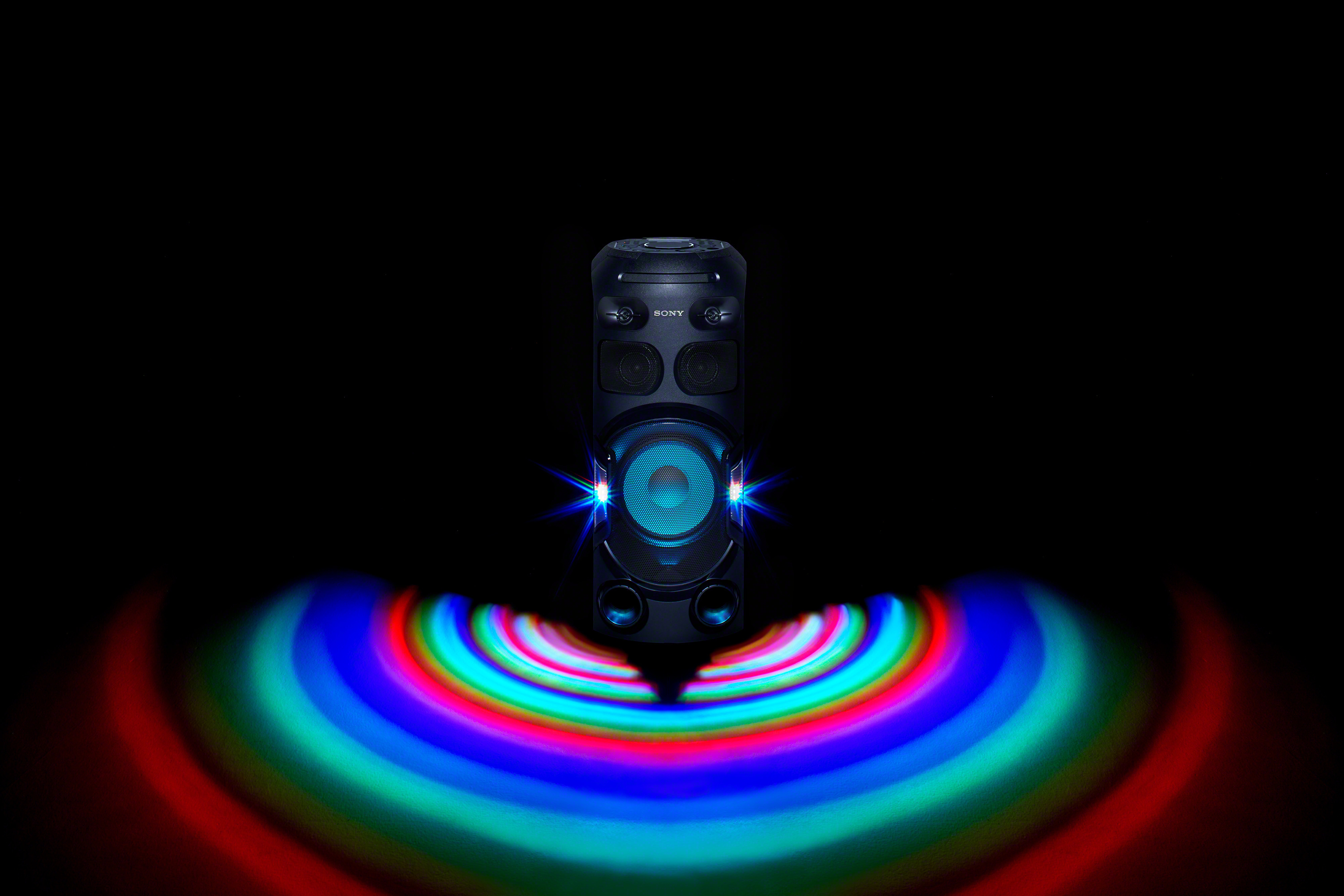 Grâce au puissant MHC-V42D et ses basses longue distance, tous vos invités vibreront au rythme de la musique. L'éclairage de fête multicolore se synchronisera à la musique tandis que vous jouerez les DJ d'un geste de la main (horizontal ou vertical) ou via votre smartphone.