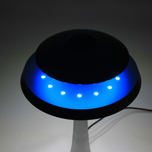 Le support de l'UFOSOUND intègre un système électromagnétique qui permet de maintenir en suspension la soucoupe-enceinte. Vous ne vous lasserez pas de contempler votre soucoupe en lévitation dans un léger mouvement de rotation et diffusant votre musique préférée. Et en plus, il permet de charger l'enseinte grâce à un système d'induction électrique à distance pilotable grâce à un interrupteur tactile sur la partie haute de la base !