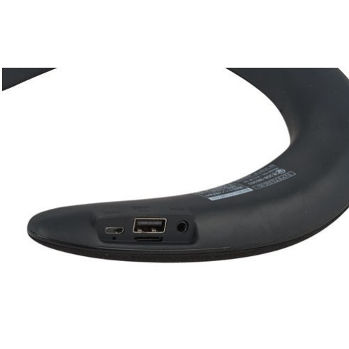Cette enceinte sans fil complète et de grande qualité, avec ses 2 x 3 watts parfaitement répartis, avec microphone intégré, un slot pour carte micro SD et une batterie intégrée lui offrant une belle autonomie, possède une esthétique unique qui vous permettra de l'installer sur le haut de votre corps et de profiter d'un son excellent et direct sans l'inconfort d'écouteurs intra-auriculaires ou de casques lourds pesant sur votre tête.
