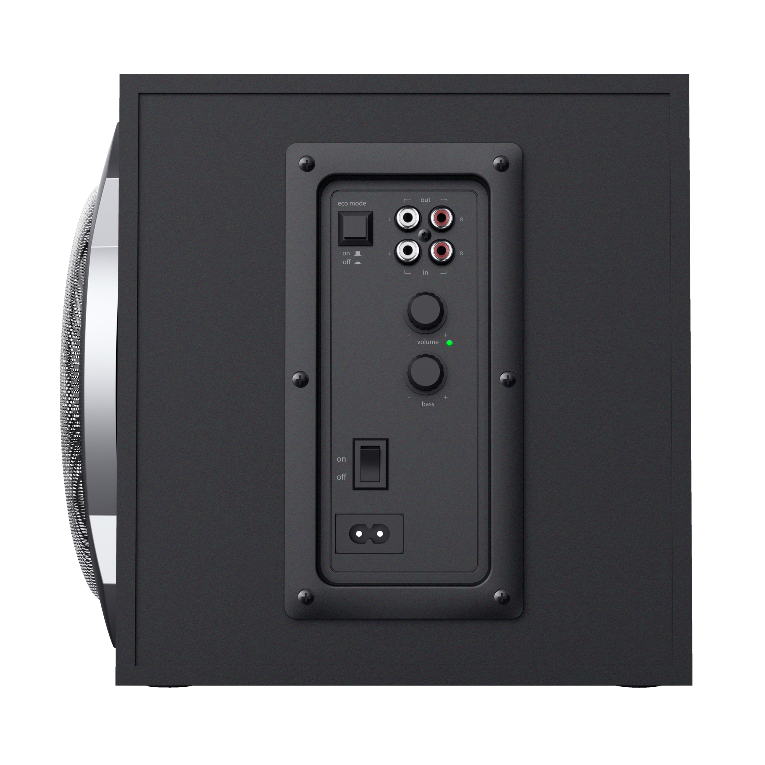 Son de haute qualité aux basses profondes Réglage du volume pratique sur fil avec prise écouteurs et Connexion iPod/MP3 Réglage du volume et des basses sur le cà´té Gestion électrique intelligente : passe en veille lorsqu'il n'est pas utilisé