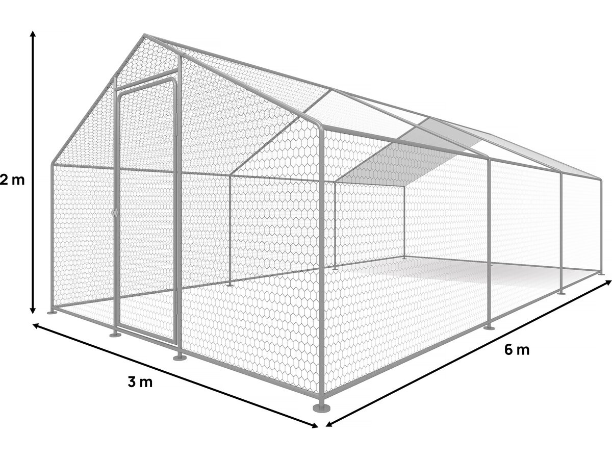 Enclos à poules 18 m² parc grillagé 6 x 3 x 2 M acier galvanisé