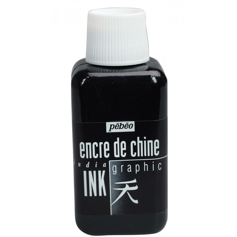 Encre de Chine. De couleur noir opaque et satiné, l'encre de Chine Graphic résiste bien à la lumière, à l'eau et au gommage.Vous pouvez mélanger l'encre de Chine à de l'eau pour diversifier les teintes : du noir carbone au gris très clair. Format : 250 ml.