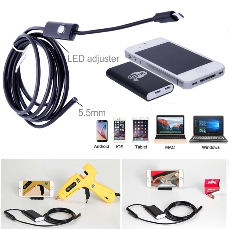 Endoscope numérique noir pour Android et iOS, Longueur: 1m, Diamètre de l'objectif: 5.5mm 0.3MP HD Caméra