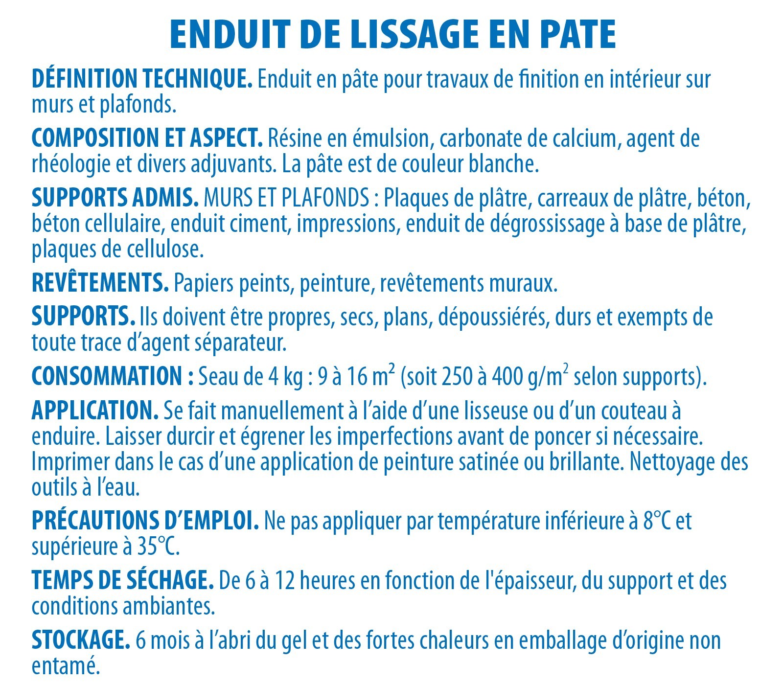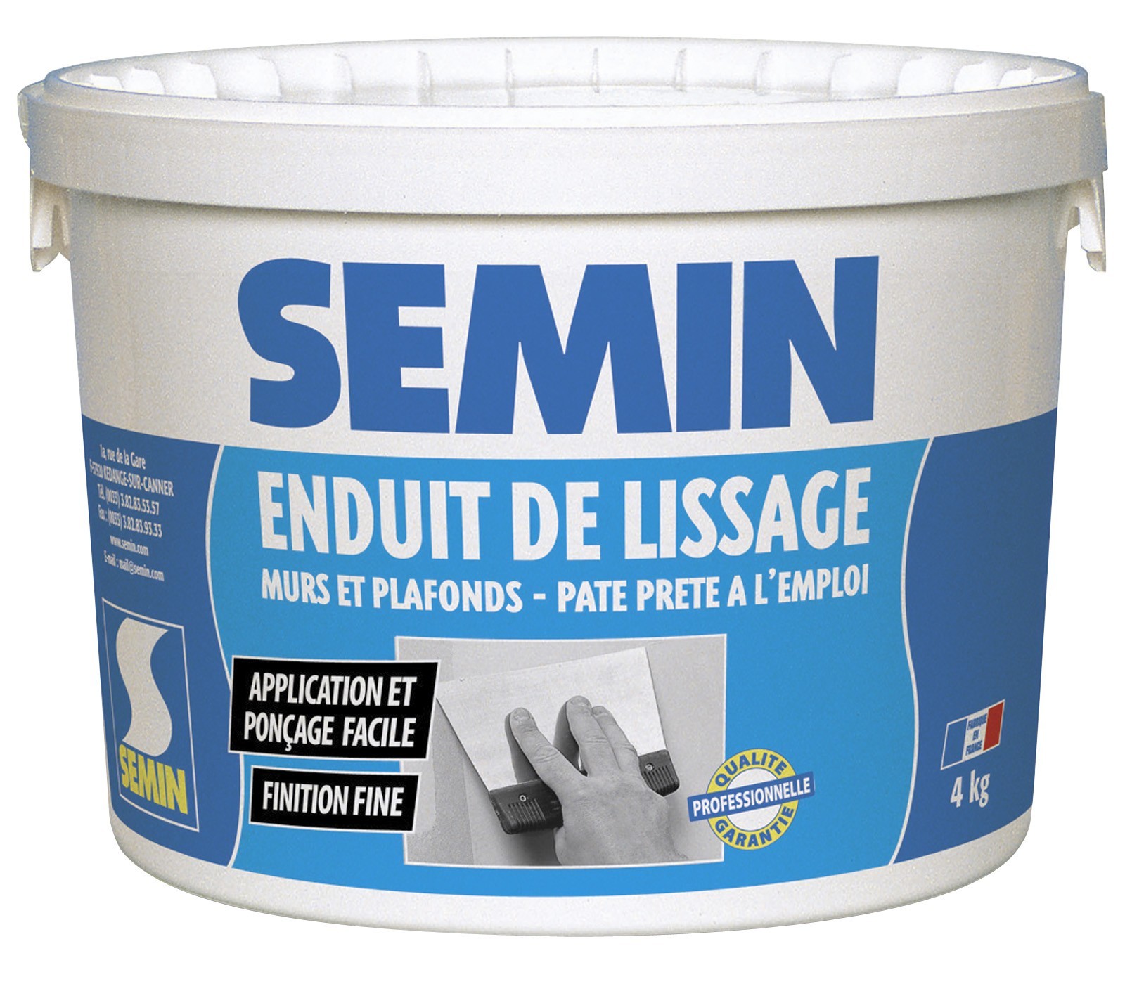 | Libellé | Enduit de lissage en pâte pour murs et plafonds Semin - intérieur - Seau de 4 k |
