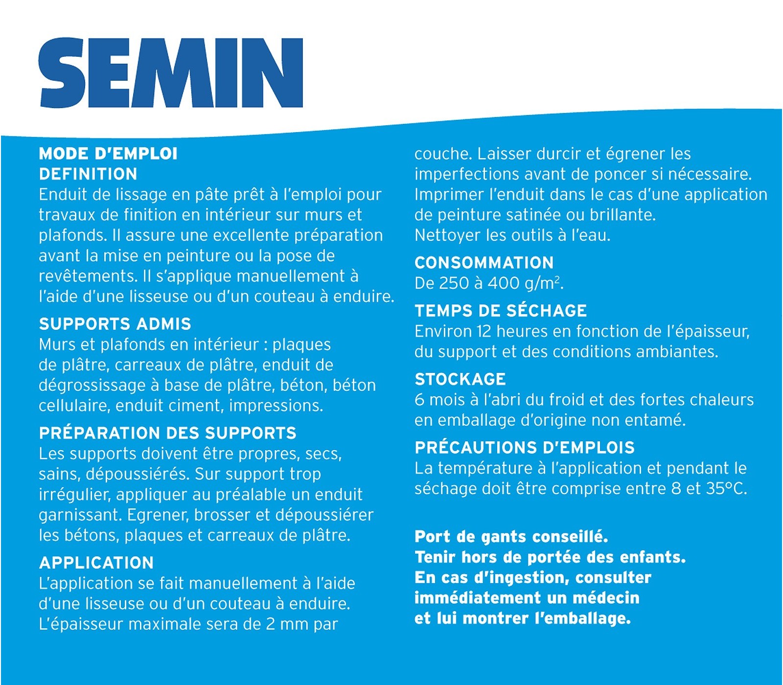 Libellé Enduit de lissage en pâte pour murs et plafonds Semin - seau de 1,5 kg et une lame à lisser