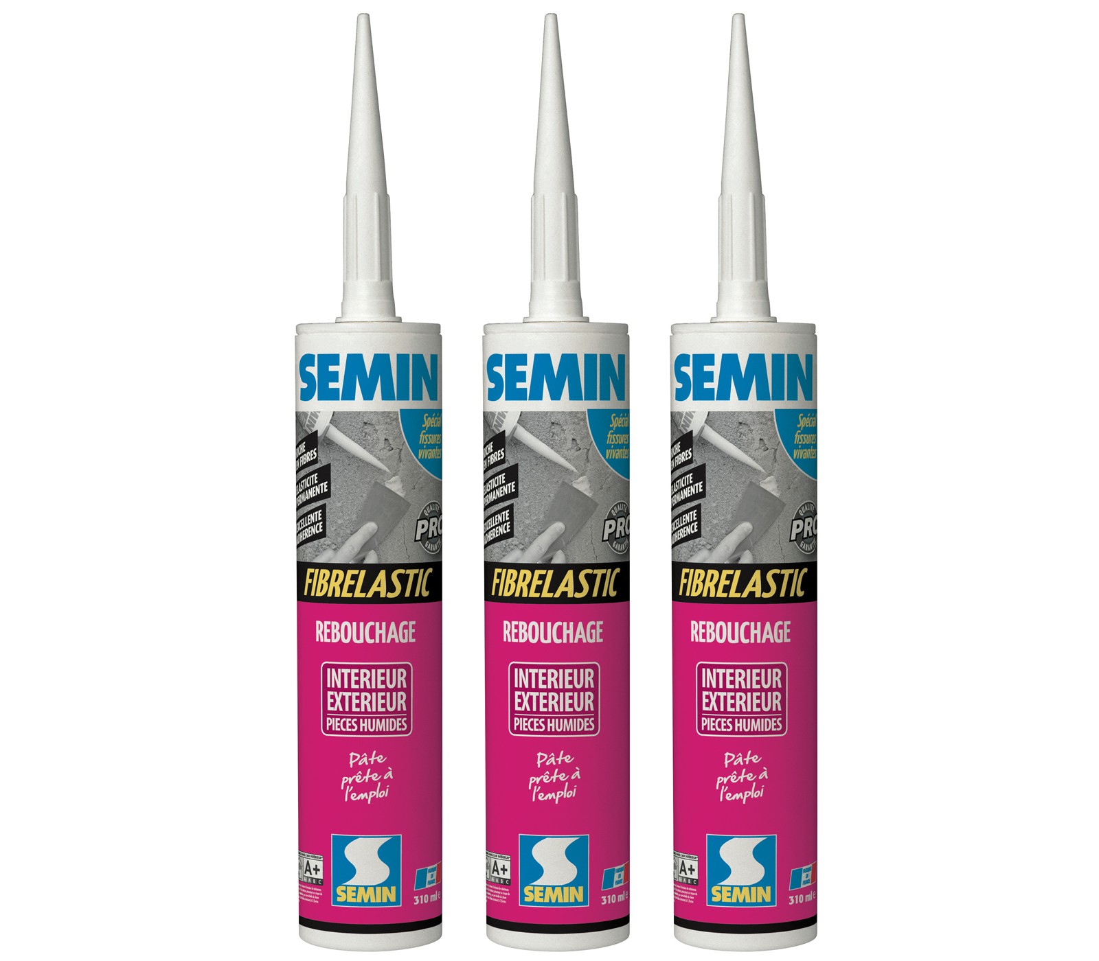 • Enduit de rebouchage élastique Fibrelastic, 3 cartouches de 310 ml