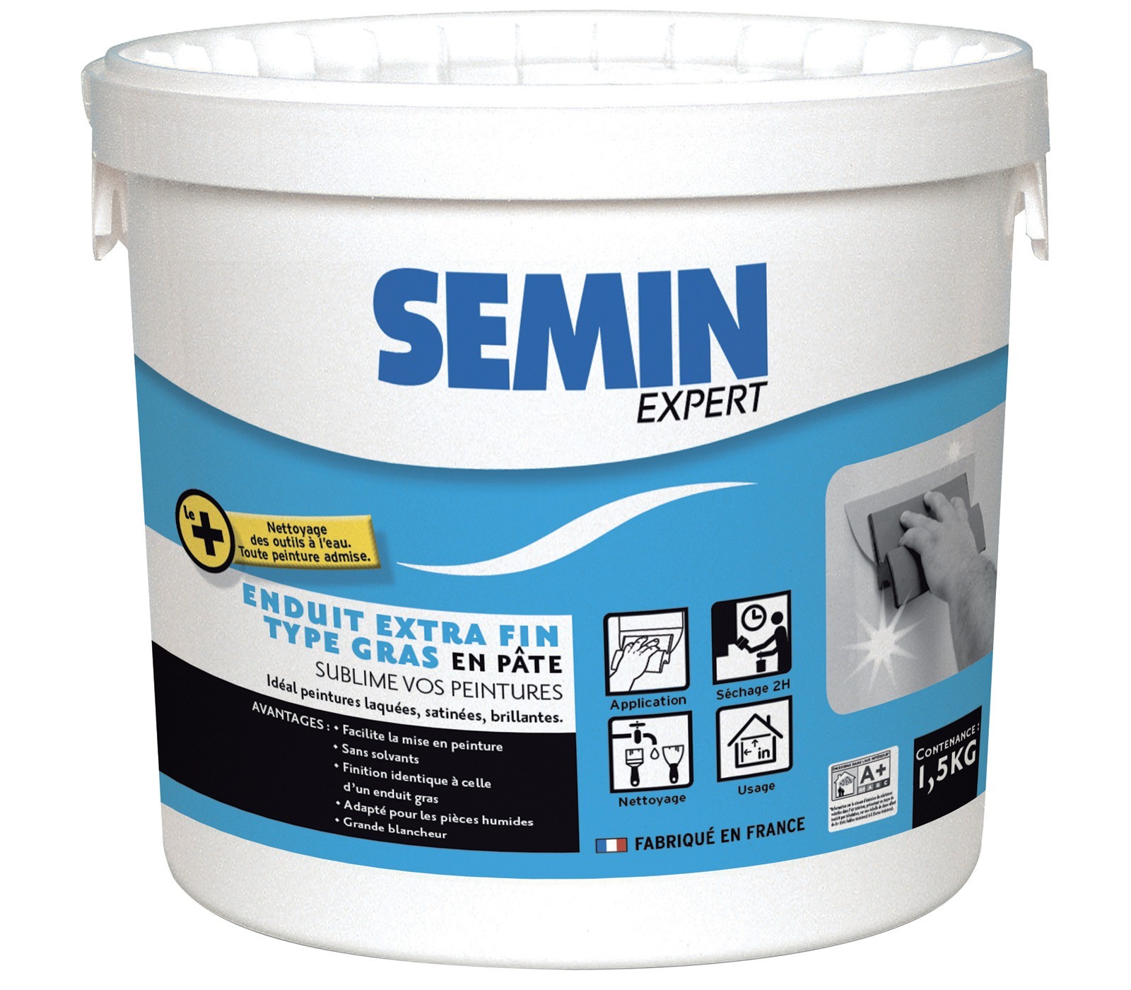 | Libellé | Enduit extra fin Semin - lissage type gras, sans solvants - séchage rapide - seau de 1,5 kg |