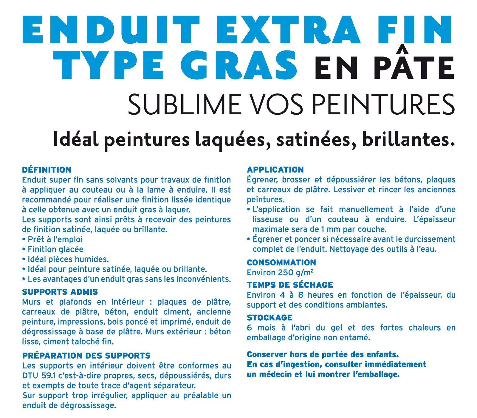Enduit en pâte pour travaux de finition en intérieur et extérieurs sur murs et plafonds, permet d'obtenir une finition identique aux enduits gras tout en étant en phase aqueuse.